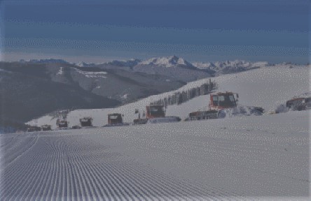 Skiing Groomed Snow Groomed snow is that over which tracked grooming machines have passed, using blades in front to smooth slopes and tillers in back to churn it up into loosely packed powder, with the intent of creating consistent skiing conditions that are satisfying. Other types of groomers may be in use, with a similar effect. Not all slopes are groomed, some are groomed on a given schedule, and many are not groomed at all. Grooming most commonly takes place at night, but may happen in daylight, too, so the machines must be watched for, as they may run up hills or down. Because groomers course over the resorts mainly at night, conditions are usually best on groomed runs when the resort opens in the mornings. As more skiers and boarders pass over the intricacies of the groomed snow, however, crystal incricacies are melted and then refreeze, making the surface harder and even icy as the day progresses. So get out early if you can. Sometimes snow will fall on a groomed slope after it has been groomed, creating confusion next morning when skiers find an unexpected condition. Too, at times such as in spring when snow turns slushy on warm days, then freezes hard at night, the groomers cannot break the surface and create the desired conditions.